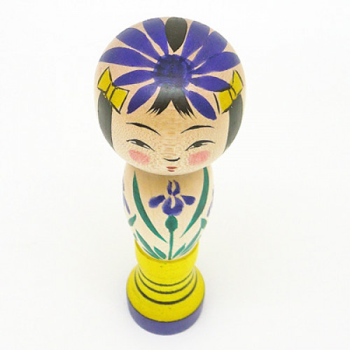 華やかで上品な表情は伝統そのままながら、紫色と黄色で伝統型のこけしとはまた違った斬新な印象です