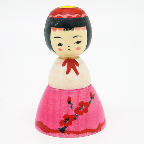 ふわっと裾広なスカートを広げておすましな表情が可愛いアイドルを夢見る女の子こけしです