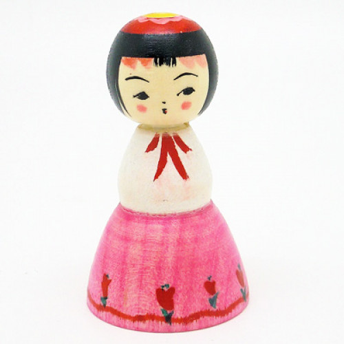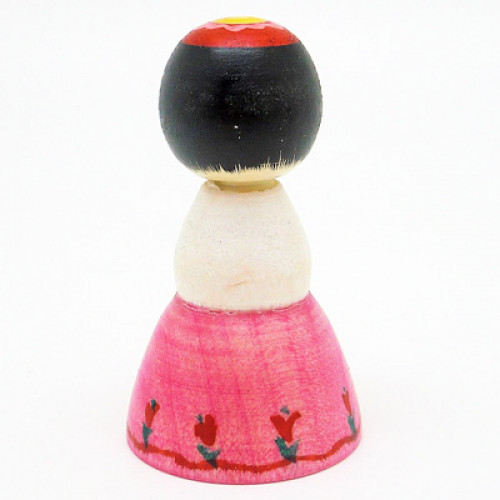 ふわっと裾広なスカートを広げておすましな表情が可愛いアイドルを夢見る女の子こけしです