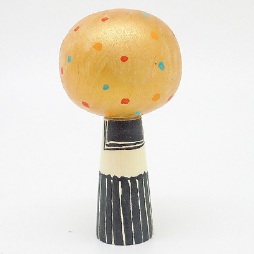ぽっこりおだんご頭の小さなこけしオレンジみたいな暖かいイエローサイズ:高さ6cm全て手作業による作品..