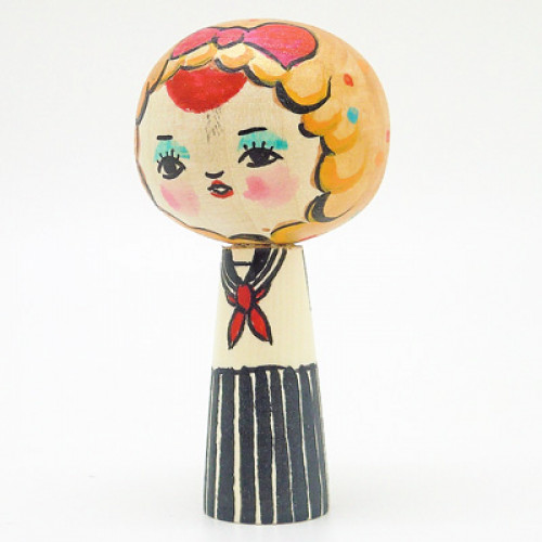 ぽっこりおだんご頭の小さなこけしレアカラーのピンクはたらこクチビルのレアフェイスサイズ:高さ6cm全..