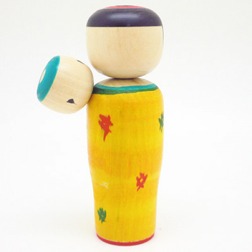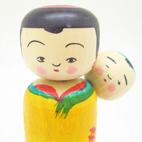 こけしでは古くから比較的よく作られる、お母さんが可愛い赤ちゃんをおんぶしている子守こけしです