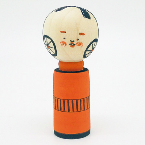 こけしに使われているカラーは黄丹(おうに)、古来より太陽の光を象徴し、皇太子のみが着用を許された格式高い伝統色。